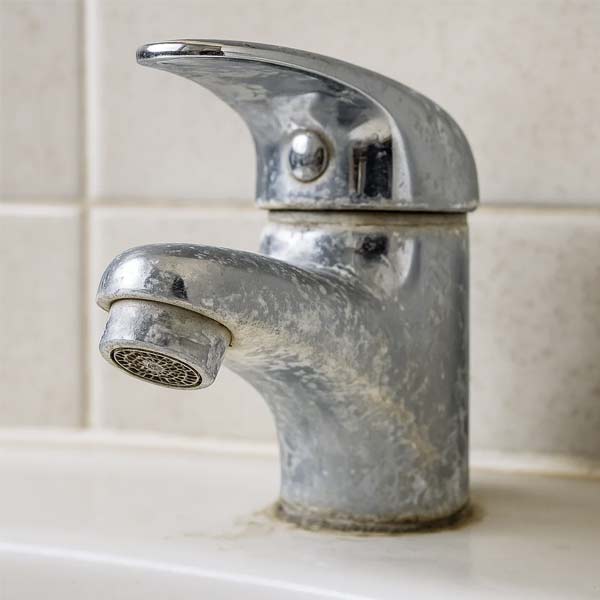 You might notice white residue building up on taps, shower screens, and tiles, or kettles and appliances requiring frequent descaling. Laundry may feel stiff after washing, and soap or shampoo may not lather or rinse away cleanly. Some households experience staining on sinks or toilets, cloudy water, or unpleasant smells when running taps.